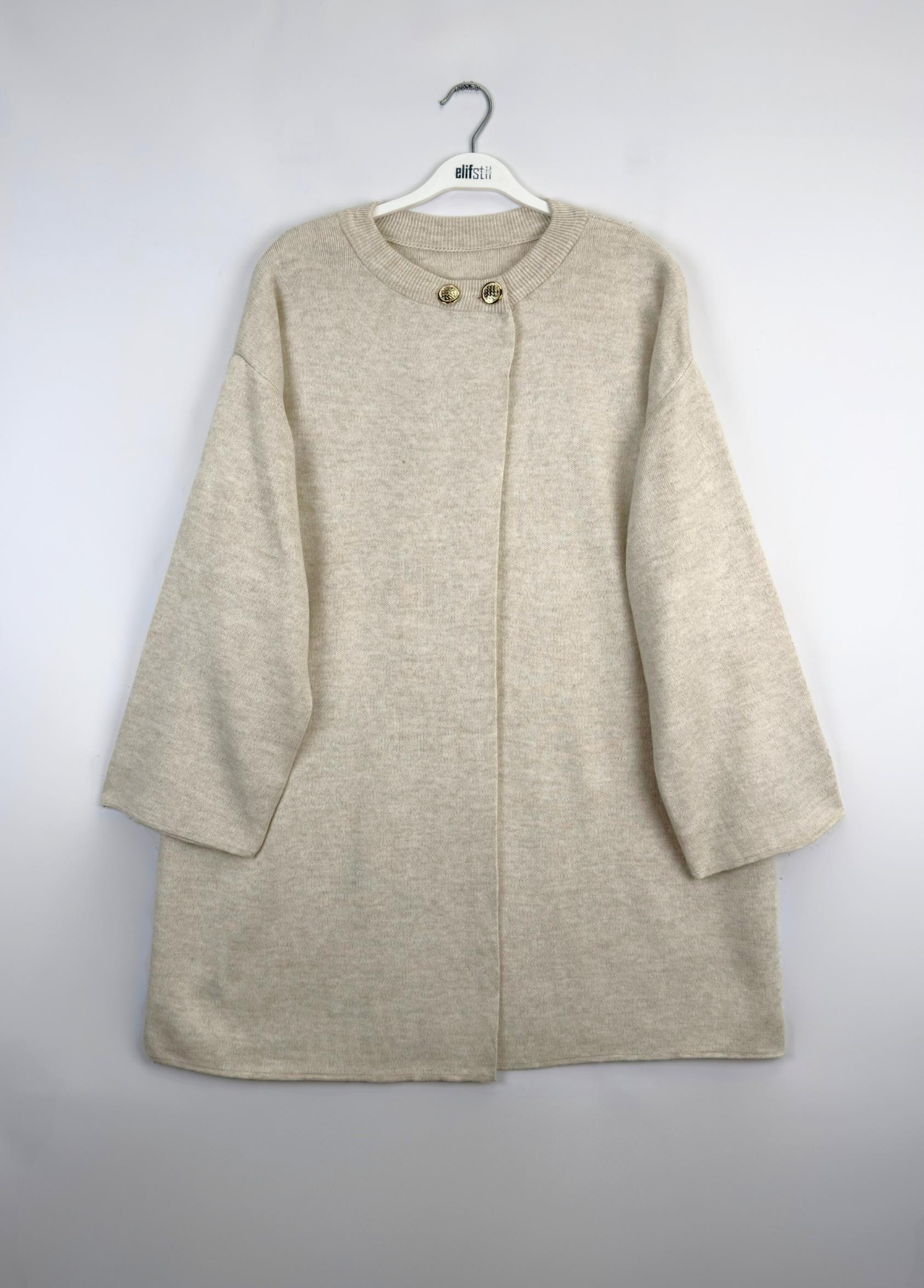 yumuşak dokusu ve modern kesimi ile hem konfor hem de stil sunar. Geniş kalıbı sayesinde rahat bir kullanım sağlarken, minimal tasarımı ve yakadaki altın rengi düğme detayı ile sofistike bir görünüm kazandırır. İster günlük kullanımda ister özel davetlerde şıklığınızı tamamlayacak bu kaban, gardırobunuzun vazgeçilmezi olacak.